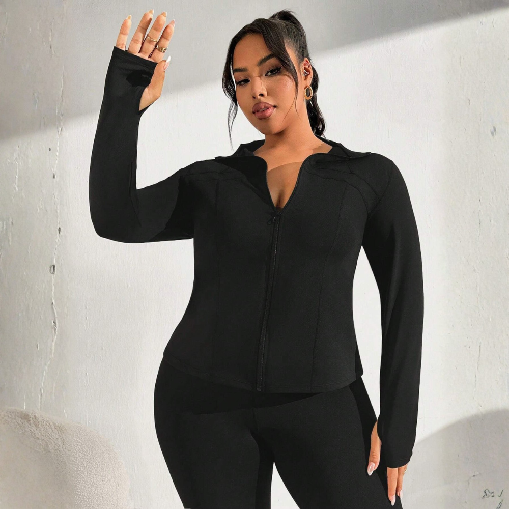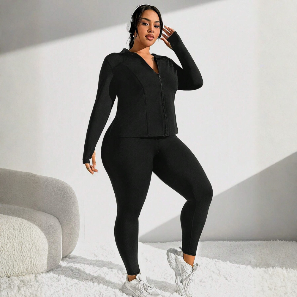 Damen Plus-Size Gym Wear Set | Sportjacke mit Reißverschluss & Leggings