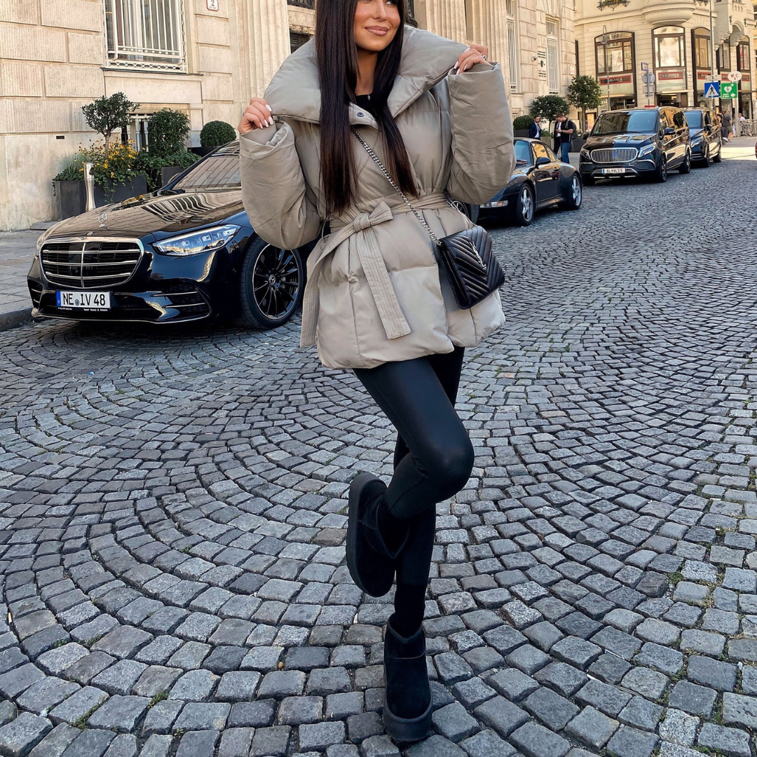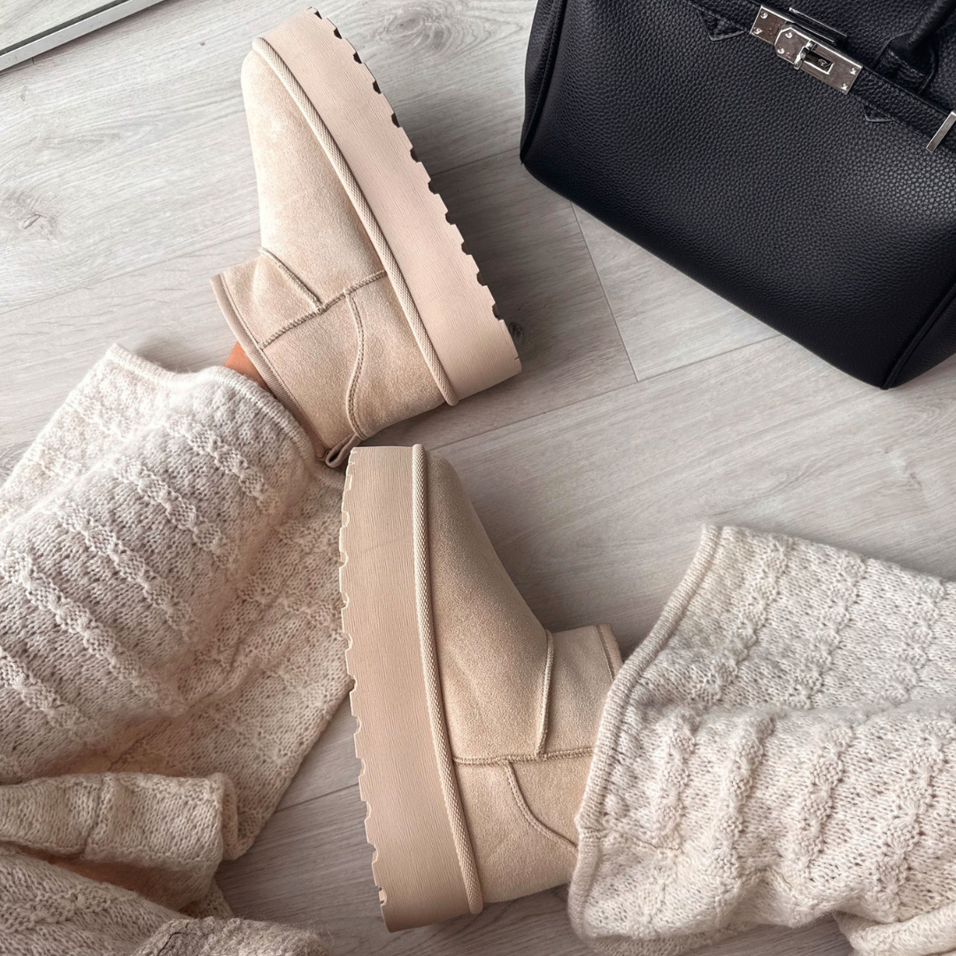 Diese Schuhe fallen normal bis etwas kleiner aus. Bei halben Größen empfiehlt sich für den Winter mit dickeren Socken die größere Option. Der Absatz beträgt etwa 5 cm, siehe Bild. Das Innenmaterial ist vollständig gefüttert, einschließlich der Sohle.